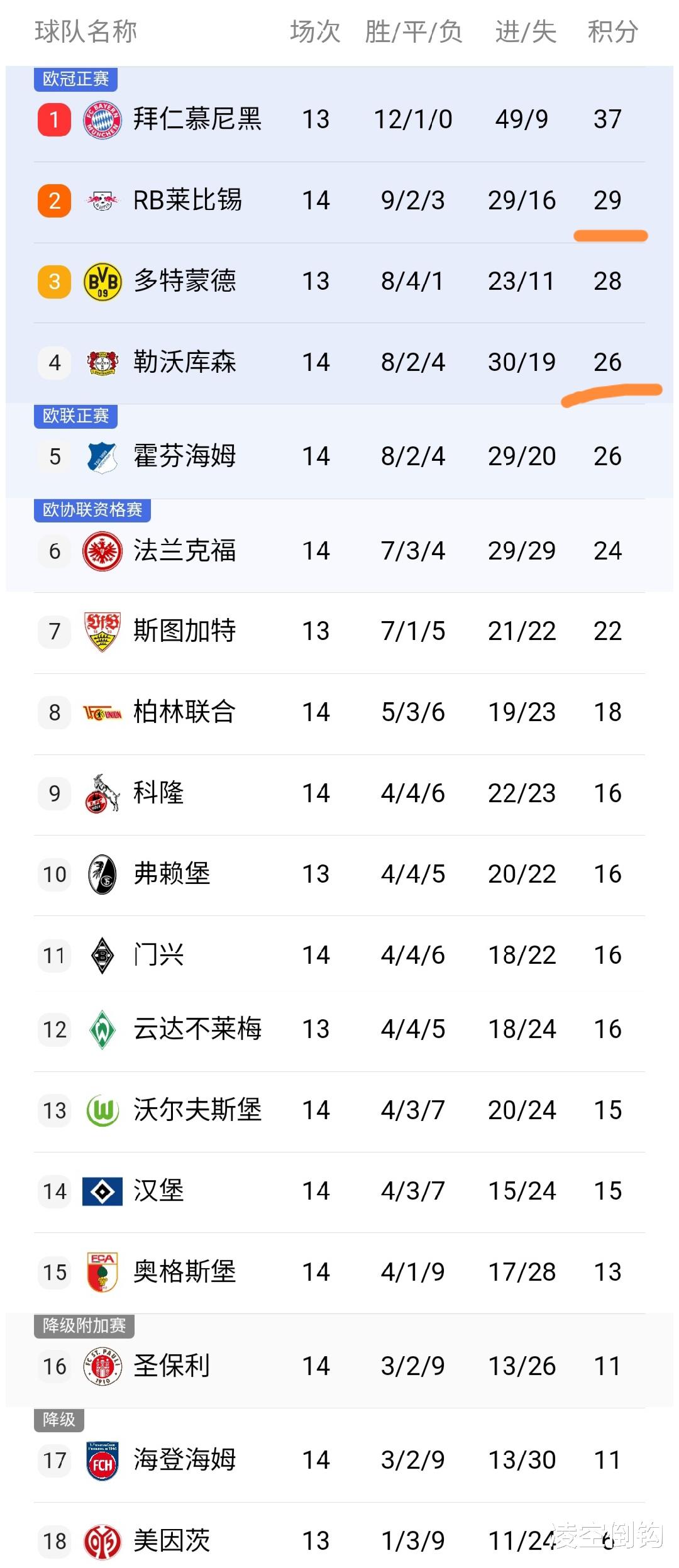 今天凌晨,德甲适度多场争夺,比赛之后,德甲最新积分榜出炉,咱们来望望。