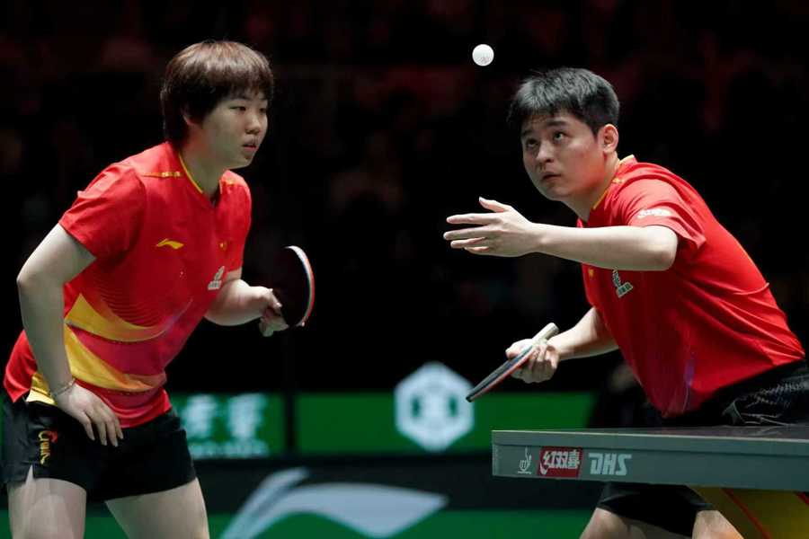 新华社相片,成王人,2025年11月30日\n 11月30日,中国队选手王楚钦/孙颖莎(右)在混双比赛中。最终,他们3比0顺服中国香港队选手黄镇廷/杜凯琹。\n 当日,在四川成王人举行的2025年海外乒联夹杂团体寰宇杯第一阶段A组小组赛中,中国队总比分8比1顺服中国香港队。\n 新华社记者 王曦 摄
