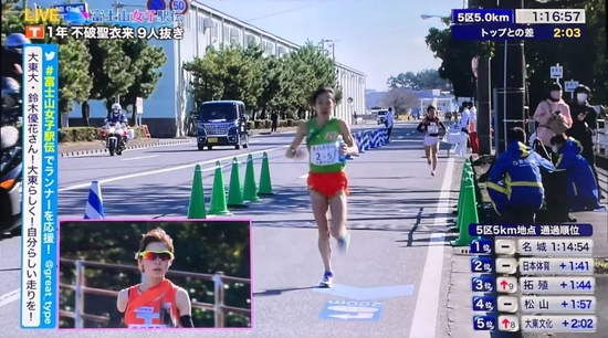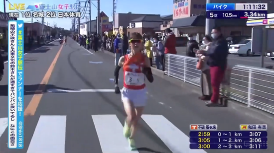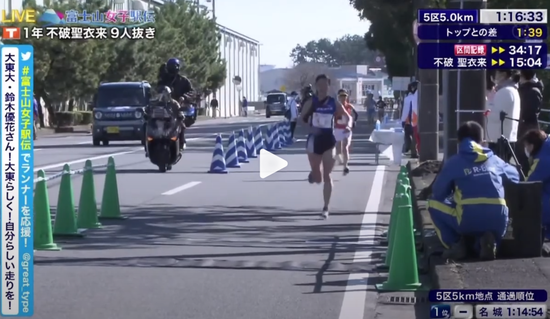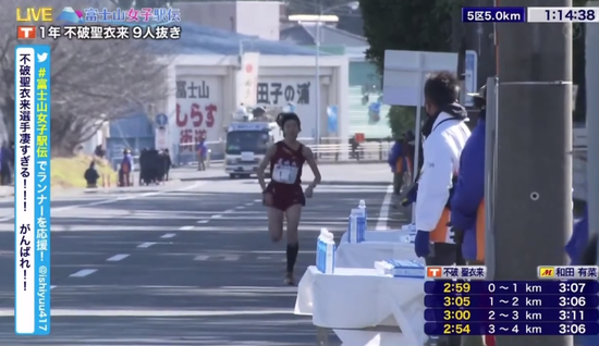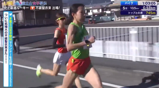 在5公里计时点后,不破圣衣来高出了日实质育大学,至此,她前边只剩下位卫冕冠军名城大学。不破通过5公里时用时15分09秒,平均3分02的配速,比她个东谈主5000米最佳得益15分20秒还要快。