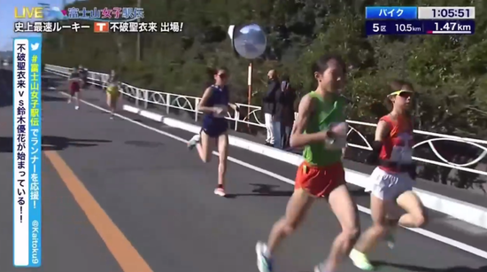 不破圣衣来和铃木优花一直皆头并进,不到2公里就越过半数学校。