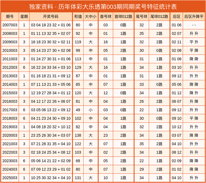 第2026003期大乐透分析号码参考: