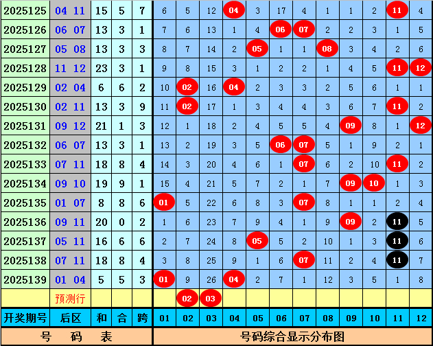 后区上期开出奖号01和04,该组合历史上出现了34次,其下期奖号频次阔别为:号码01、06出现8次,04、10出现7次,03、09、12出现6次,05出现5次,02、11出现4次,07出现3次,08出现2次,本期后区参考号码01、02、03、05,精选两码02和03。