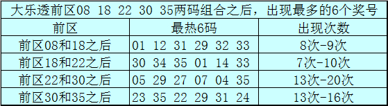 前区两码18和22和之后阐发最热的6个号码为:30、34、35、01、14、33;