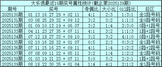 前区奇偶分析:上期前区奖号奇偶比开出1:4,偶数号码较热,最近10期前区奇偶奖号总比例为30:20,奇数号码走势较热,本期看有趣数号码赓续走热,预测奇偶比为3:2。
