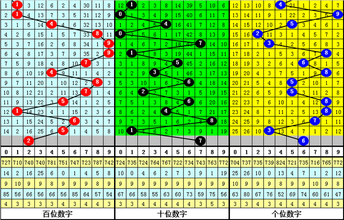 百位上期开出号码5,为奇数,偶数号最近出现次数较少,上期轮空之后,本期注视偶数号码回补,温煦号码2。