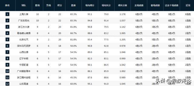 值得一提的是上海新赛季现时获得10胜2负的战绩,高居积分榜第一,而上个赛季上海开局阶段是2胜10负,跟着刘鹏下课,洛夫顿加盟等一系列操作,上海开启了漫长的北伐征途,直至重返季后赛区域。