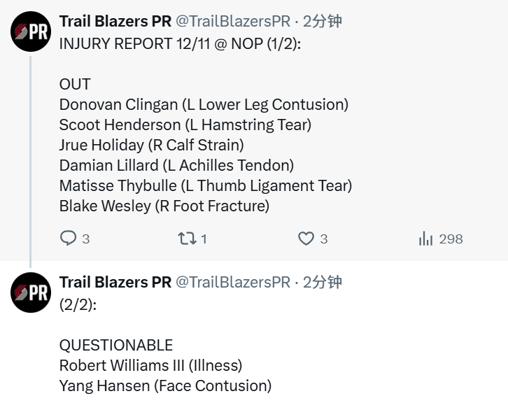 北京本领12月11日,开发者官方更新了明日对阵鹈鹕的伤病叙述,因面部损害被列为出战成疑(上场可能50%)。