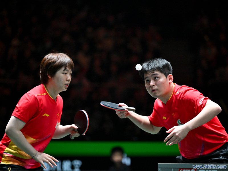 11月30日,中国队选手王楚钦/孙颖莎(右)在混双比赛中。最终,他们3比0礼服中国香港队选手黄镇廷/杜凯琹。\n 当日,在四川成都举行的2025年海外乒联搀杂团体天下杯第一阶段A组小组赛中,中国队总比分8比1礼服中国香港队。\n 新华社记者 王迎 摄