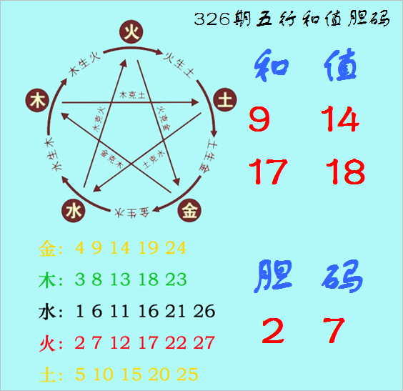 福彩3D第2025326期神算天五行和值胆码图