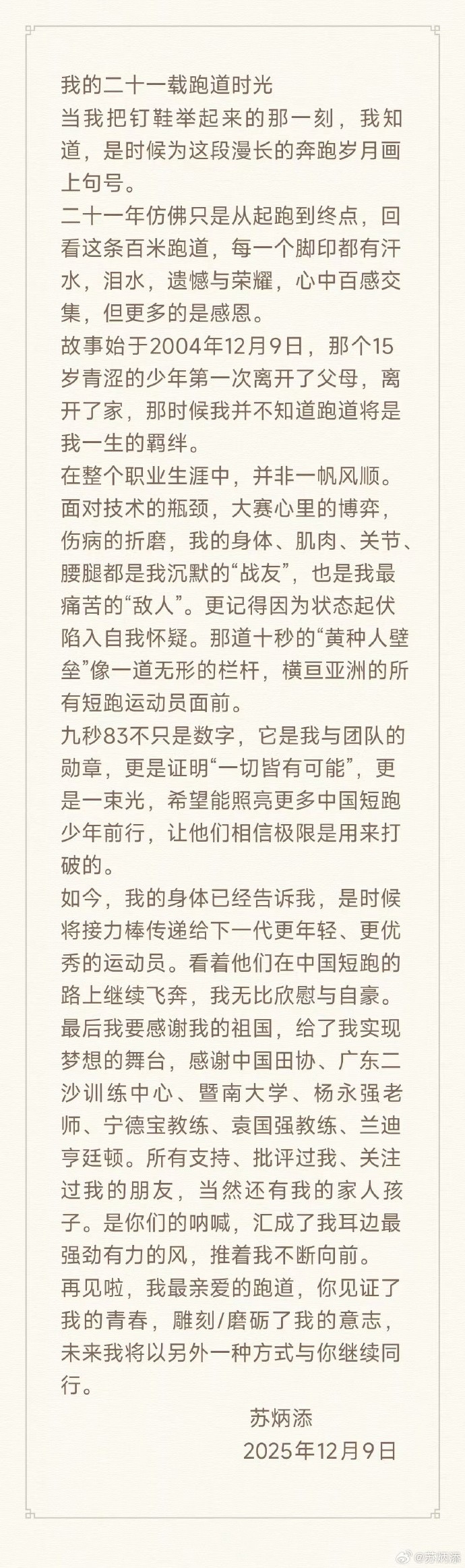 上昼发稿时,赶巧一条新闻弹窗:须眉100米亚洲记录保执者、中国短跑名将苏炳添文告退役!