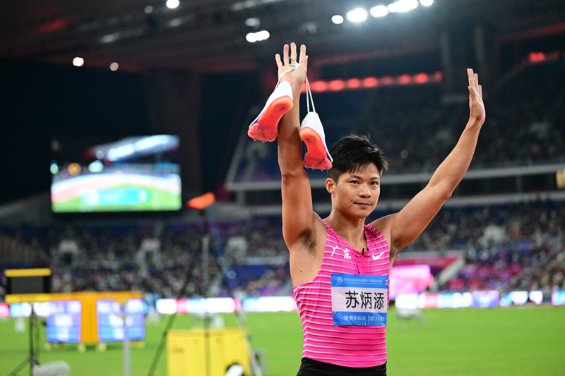 新华社像片,广州,2025年11月20日\n 11月20日,广东队选手苏炳添在比赛后向不雅众问候。\n 当日,第十五届寰球通顺会田径款式须眉4X100米致力决赛在广州举行。\n 新华社记者 江汉 摄