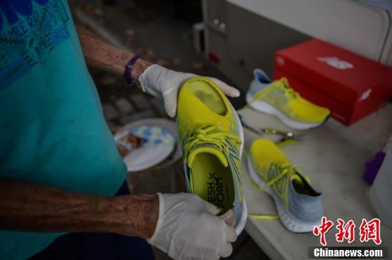 时代退回到数十天之前,好意思国纽约皇后区举行的“3100英里自我高出赛”被认定为寰球最长的超马赛,图为使命主说念主员检讨参赛者的跑鞋。