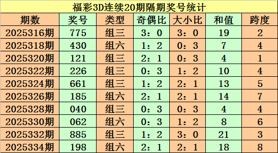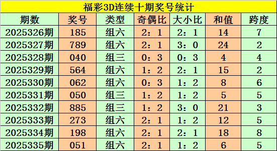 上期总结:福彩3D第2025335期奖号:051。组六、小大小、偶奇奇。