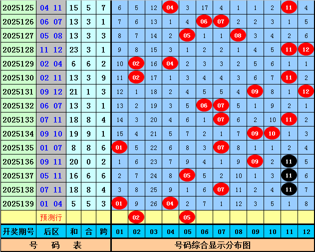 后区5码参考:02 05 07 09 11