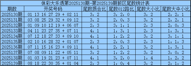 体彩大乐透第2025139期开奖号码为:08 18 22 30 35 + 01 04其中前区奖号奇偶比为1:4,大小比为4:1,012路为2:1:2,前区余数质合比为2:3,012路比为1:0:4,大小比为3:2,大中小比2:1:2。