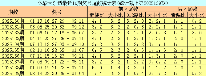 上期回顾:体彩大乐透第2025139期开出号码:08 18 22 30 35 + 01 04,其中前区奖号余数奇偶比为1:4,大小比为3:2,012路比为1:0:4,大中小比为2:1:2,后区奖号余数奇偶比为1:1,大小比为0:2。