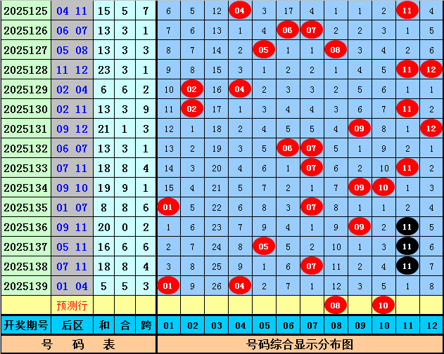 后分歧析:上期后区开出奖号01、04,为全小、一奇一偶组合。
