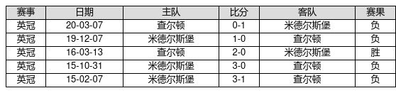 查尔顿 VS 米德尔斯堡两队近10年的交战次数为5场,查尔顿1胜0平4负,赢球概率为20.0%,平局概率为0.0%,输球概率为80.0%。