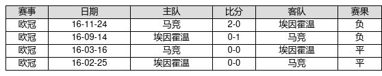 埃因霍温 VS 马竞两队近10年的交战次数为4场,埃因霍温0胜2平2负,赢球概率为0.0%,平局概率为50.0%,输球概率为50.0%。