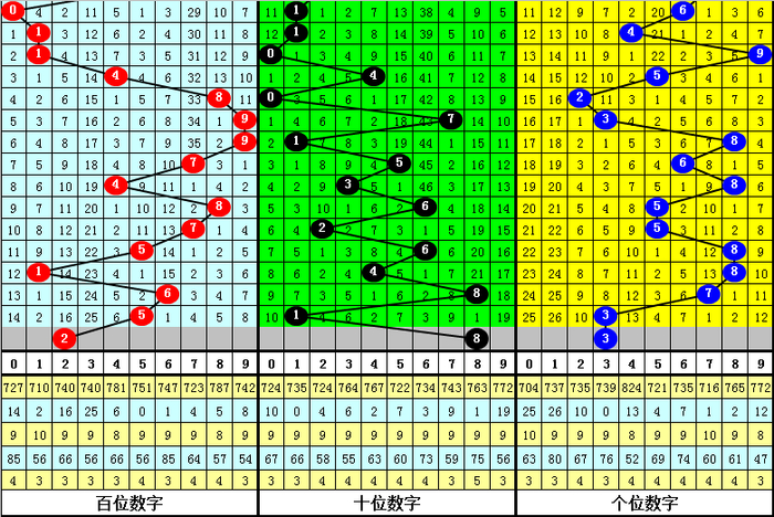 跨度判断:相接10期跨度开出012路比为3:2:5,012路跨度基本抓平,跨度最近3期遗漏值分散为14期、5期和31期,本期瞻望跨度遗漏值走大,防温冷跨度解冻,参考跨度6。