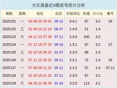 大乐透最近9期奖号数据图表
