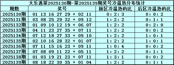 周横体彩大乐透第2025140期定位奖号遗漏值分析(界说:遗漏0-3期为热码,遗漏4-9期为温码,遗漏10期及以上为冷码)
