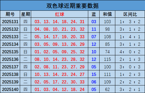 双色球上期开出奖号:01 03 04 12 18 24+05,和值62,区间比3:2:1