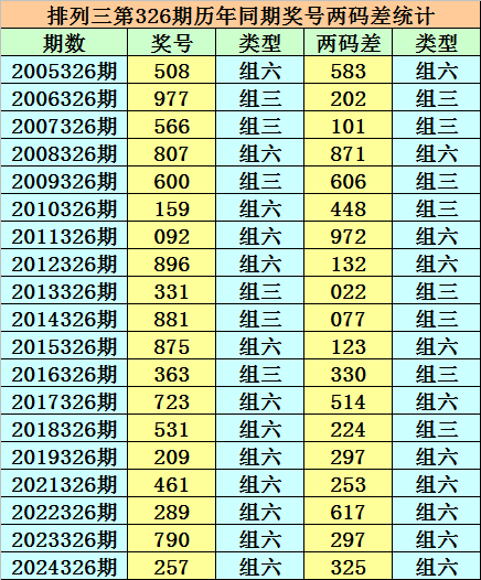 在摆设三第326期历史同时开奖中,各号码两码差永别为:358、022、011、178、066、448、279、123、022、077、123、033、145、224、279、235、167、279、235;